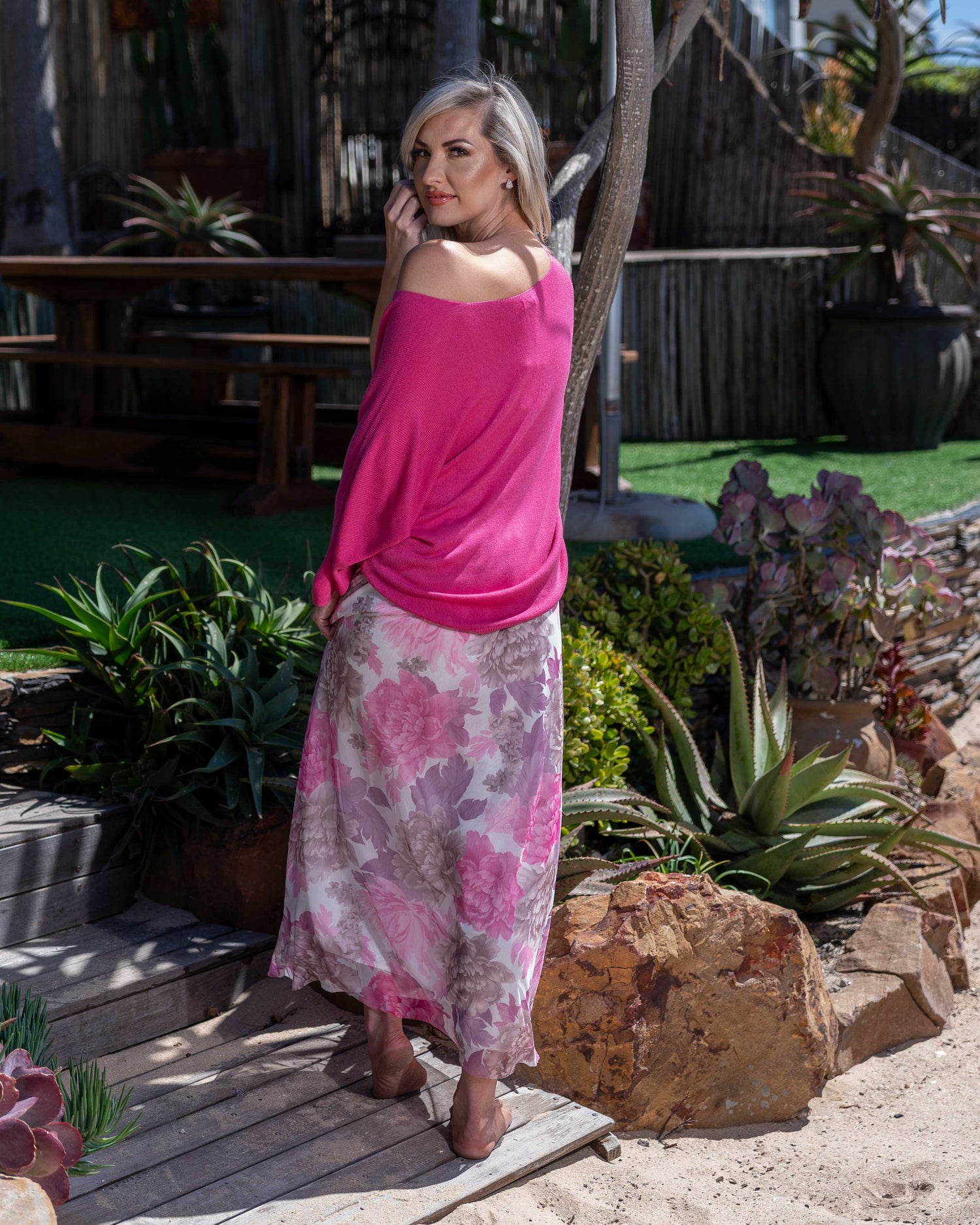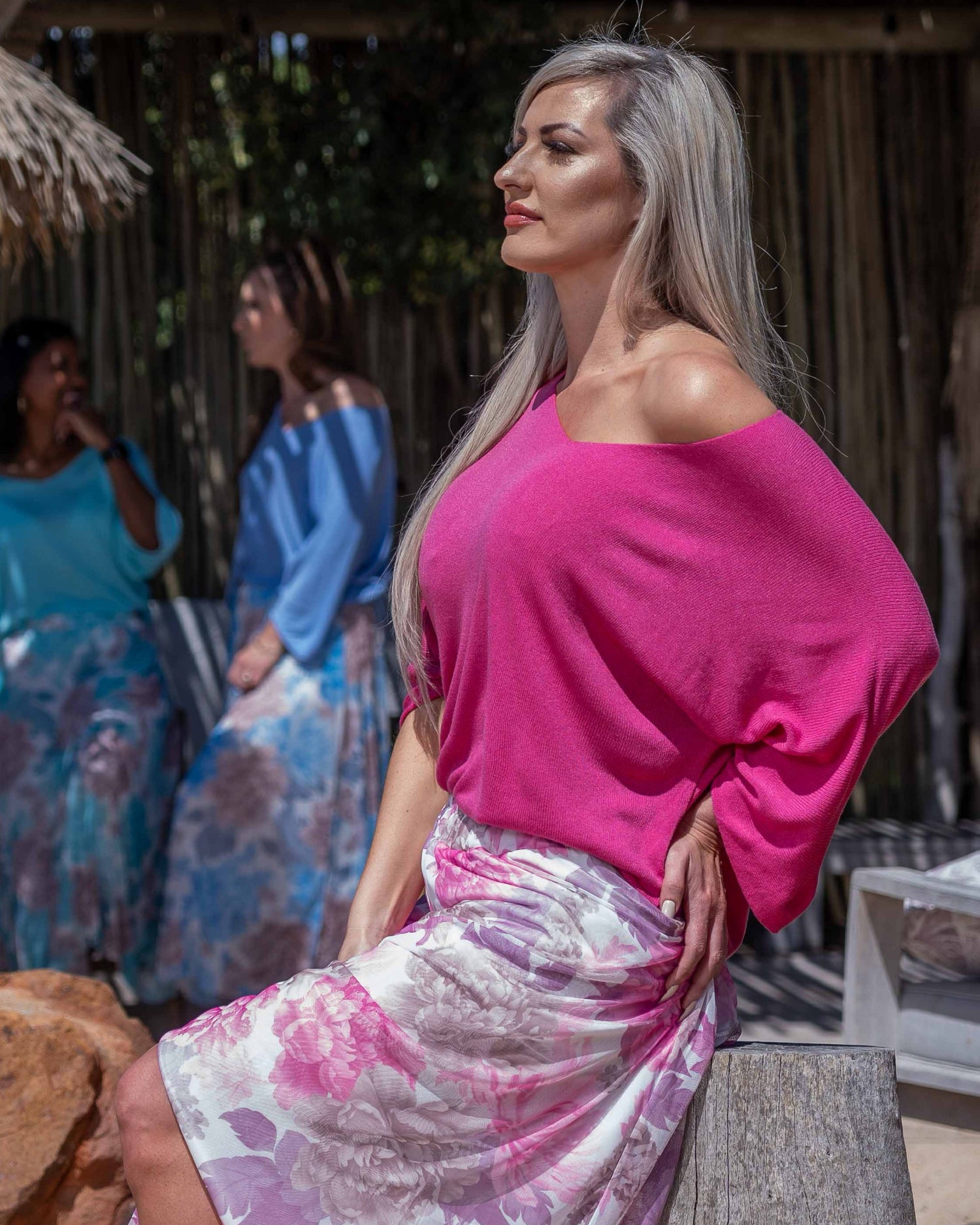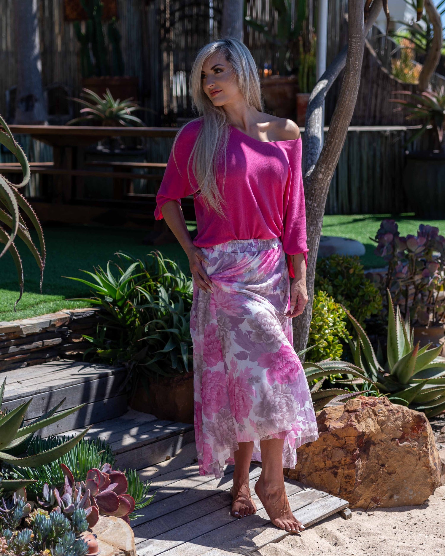 A true must-have for the season; this ultra-lightweight knit proves that knits aren’t just for winter. With its soft, flowy feel and airy drape, it’s the perfect throw-on for those breezy summer days and golden evenings. The broad, slightly V-shaped neckline can be styled on or off the shoulder for a touch of flirty charm, while the diagonally cut sleeves fall just below the elbow for a relaxed, effortless look. Light, feminine, and endlessly versatile - this knit is pure summer ease