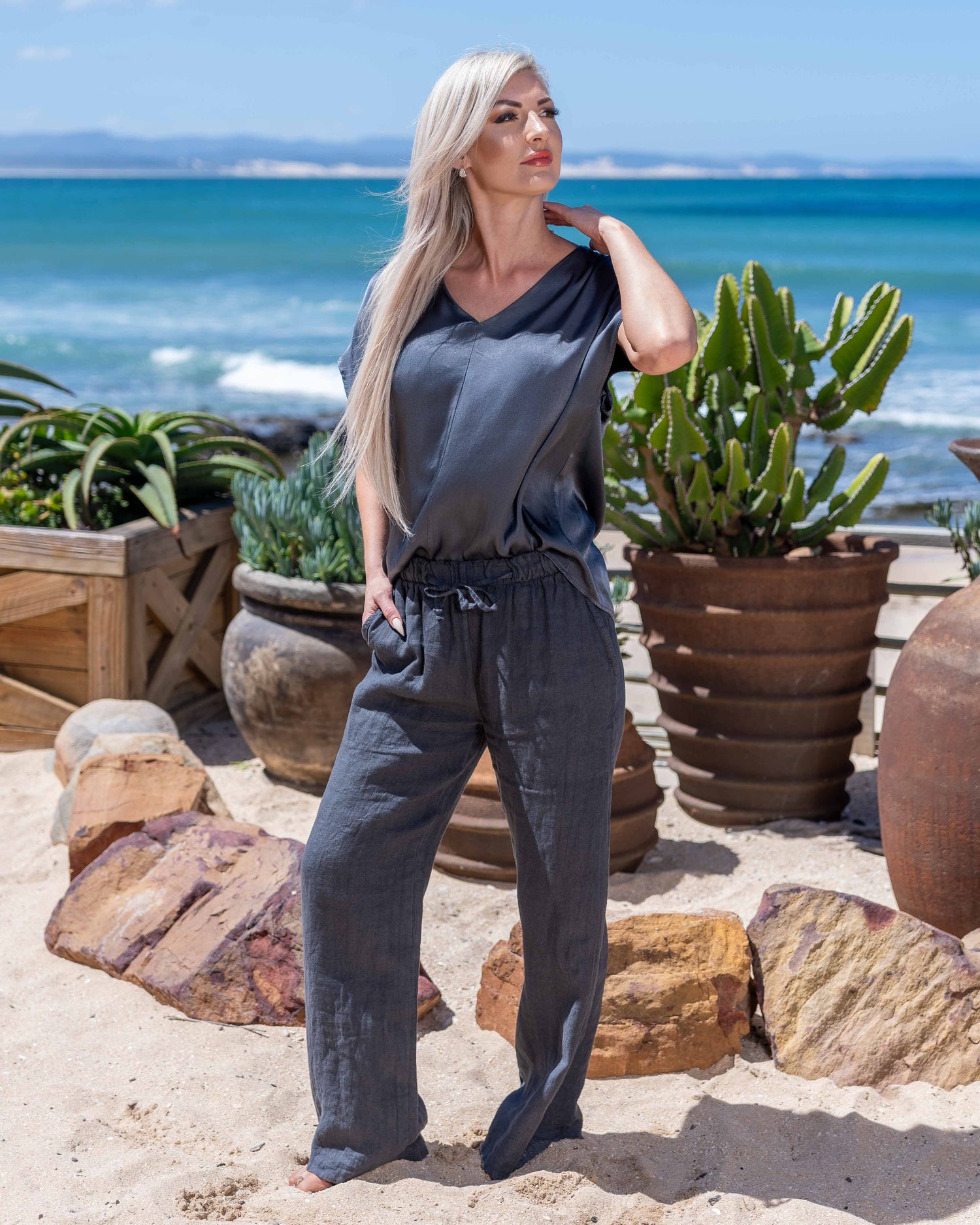 We call it the Basic Bliss Top, but trust us - there’s nothing basic about it. Designed in a rich shade, this top brings understated elegance to any summer look. The silky, slinky fabric feels wonderfully cool against the skin, making it as comfortable as it is refined. A beautifully framed V-neckline meets a vertical seam down the front, subtly elongating the silhouette and drawing the eye. The wide, softly draped sleeves add to its easy flow. With its relaxed block cut, the top drapes effortlessly over the body for a look that’s both flattering and sophisticated