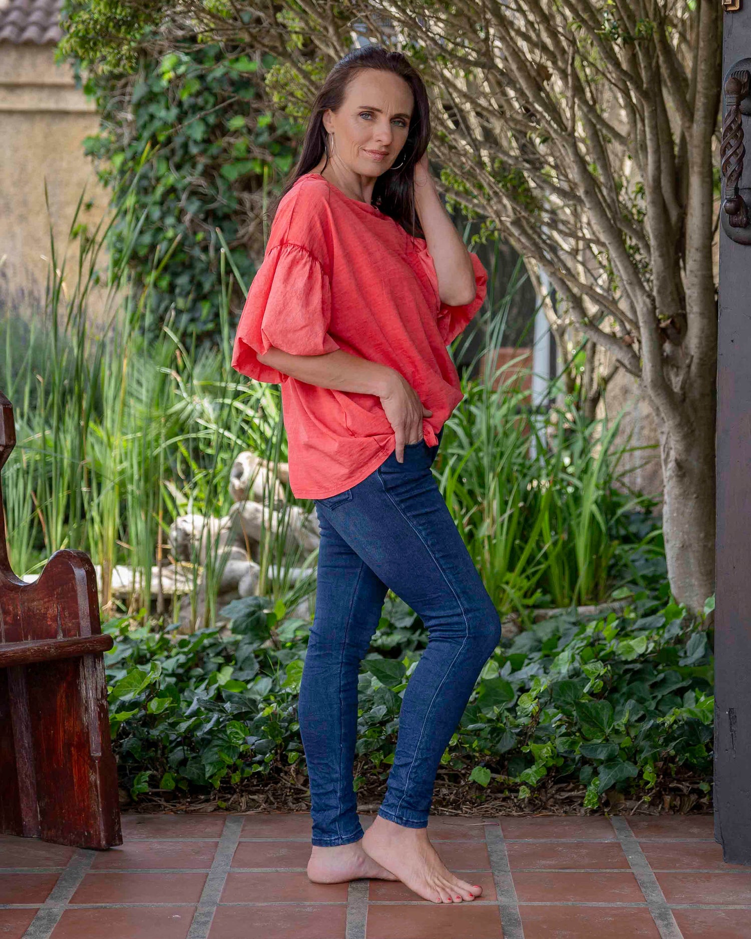 Combining modern design with effortless comfort. Featuring a round neck and made from cold-wash fabric, it offers a unique, dimensional look that enhances its chic appeal. The highlight of this piece is the puffy bubble sleeves, adding volume and style to an otherwise simple silhouette. Lightweight and airy, this top is perfect for warm days when you want to look stylish without sacrificing comfort