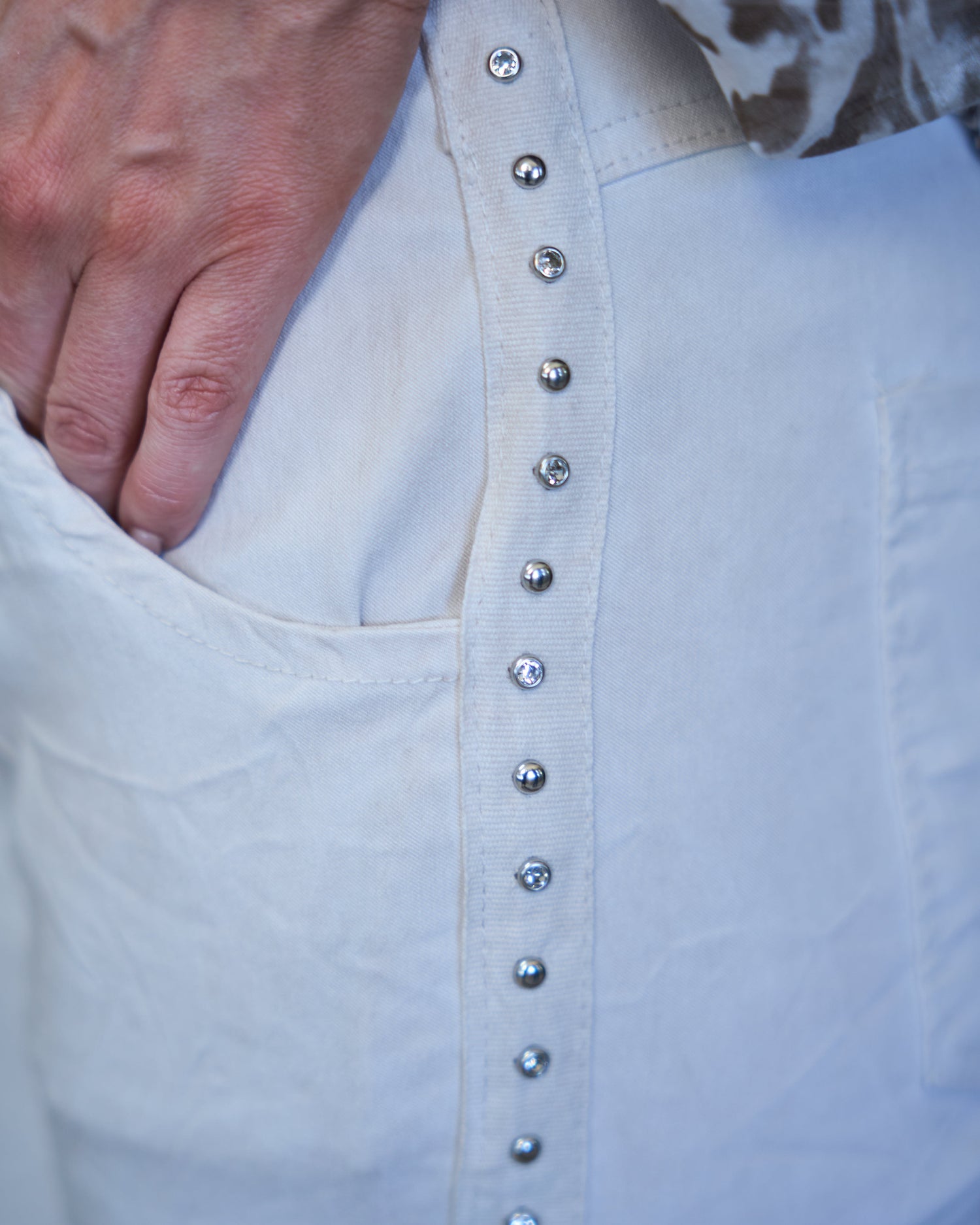 - Stud detail running along the side of the leg