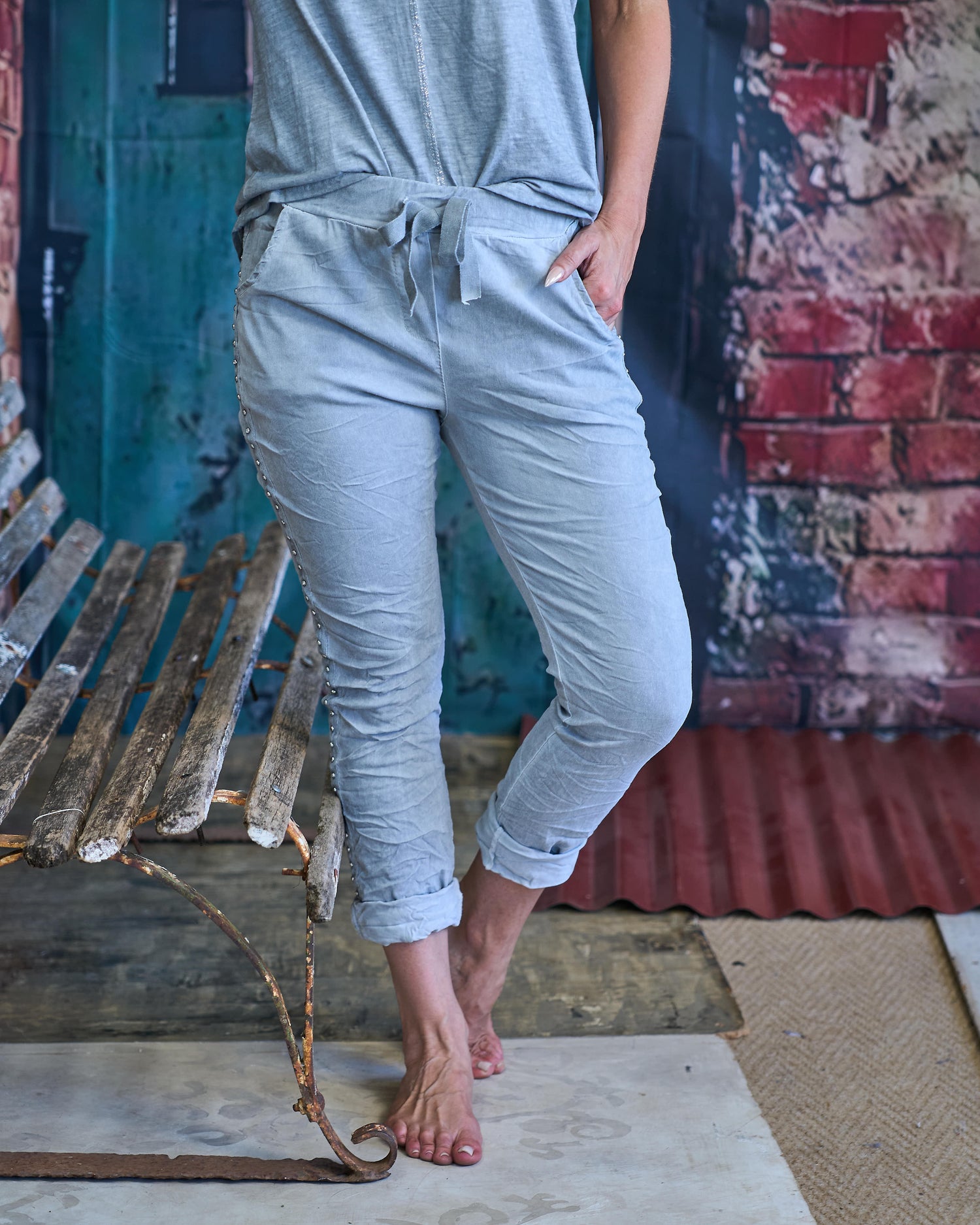 These drawstring pants are the perfect combination of comfort and subtle statement style. Designed with a soft stretch fabric and an easy elasticated waistband, they offer a flattering yet relaxed fit that moves with you throughout the day. The adjustable drawstring allows you to customise the fit, while the delicate stud detail running along the side of the leg adds just the right amount of sparkle. Finished with practical pockets, these are the kind of pants you’ll reach for again and again