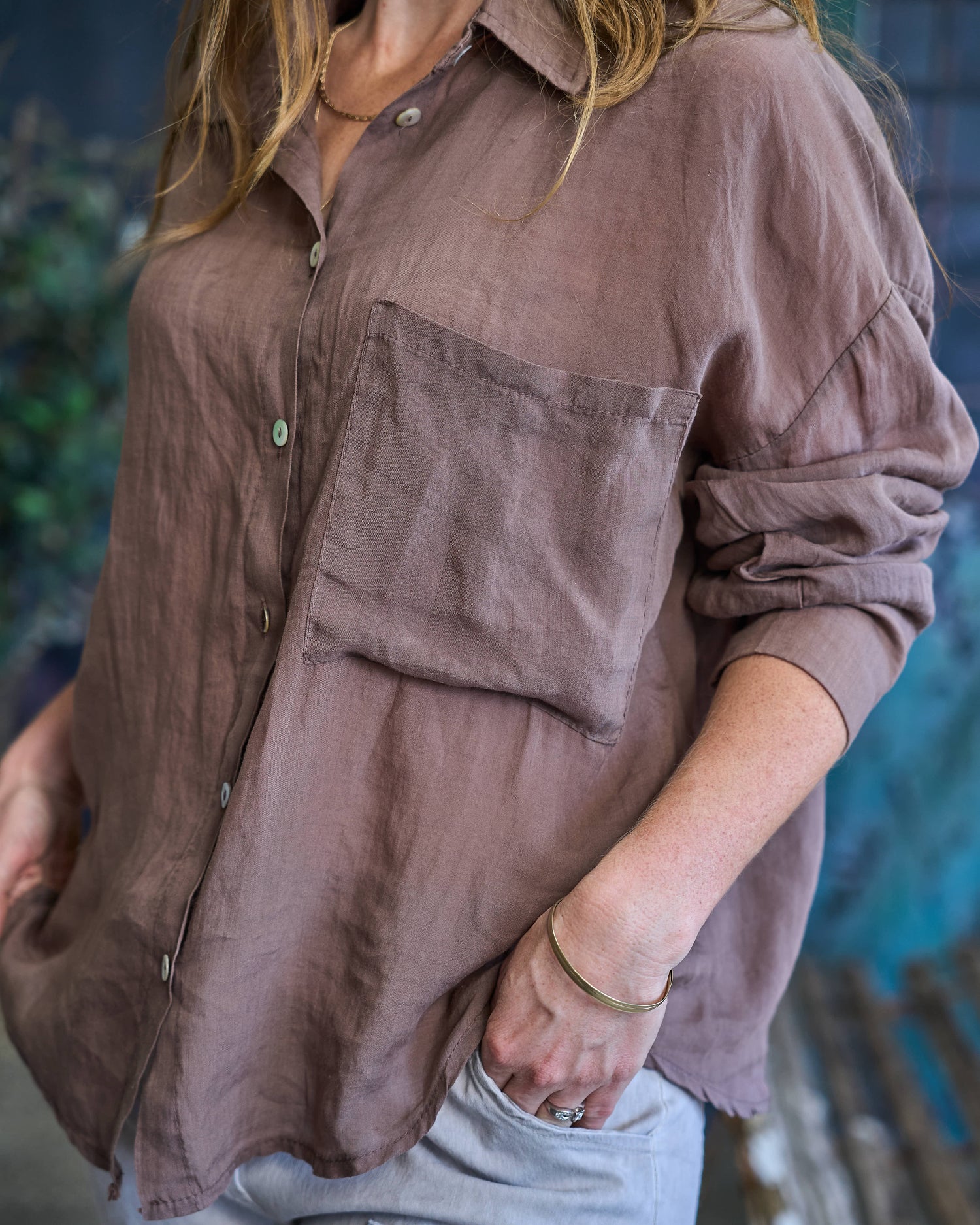 This beautifully shaped shirt is all about effortless elegance. Crafted in a soft, sheer-look fabric, it feels light and airy while creating a graceful drape over the body. The soft collar and structured cuffs add a refined touch, while the delicate shell buttons down the front enhance its timeless appeal. Finished with a flattering rounded hem, this shirt is easy to style tucked in, loose, or layered for a relaxed yet polished look