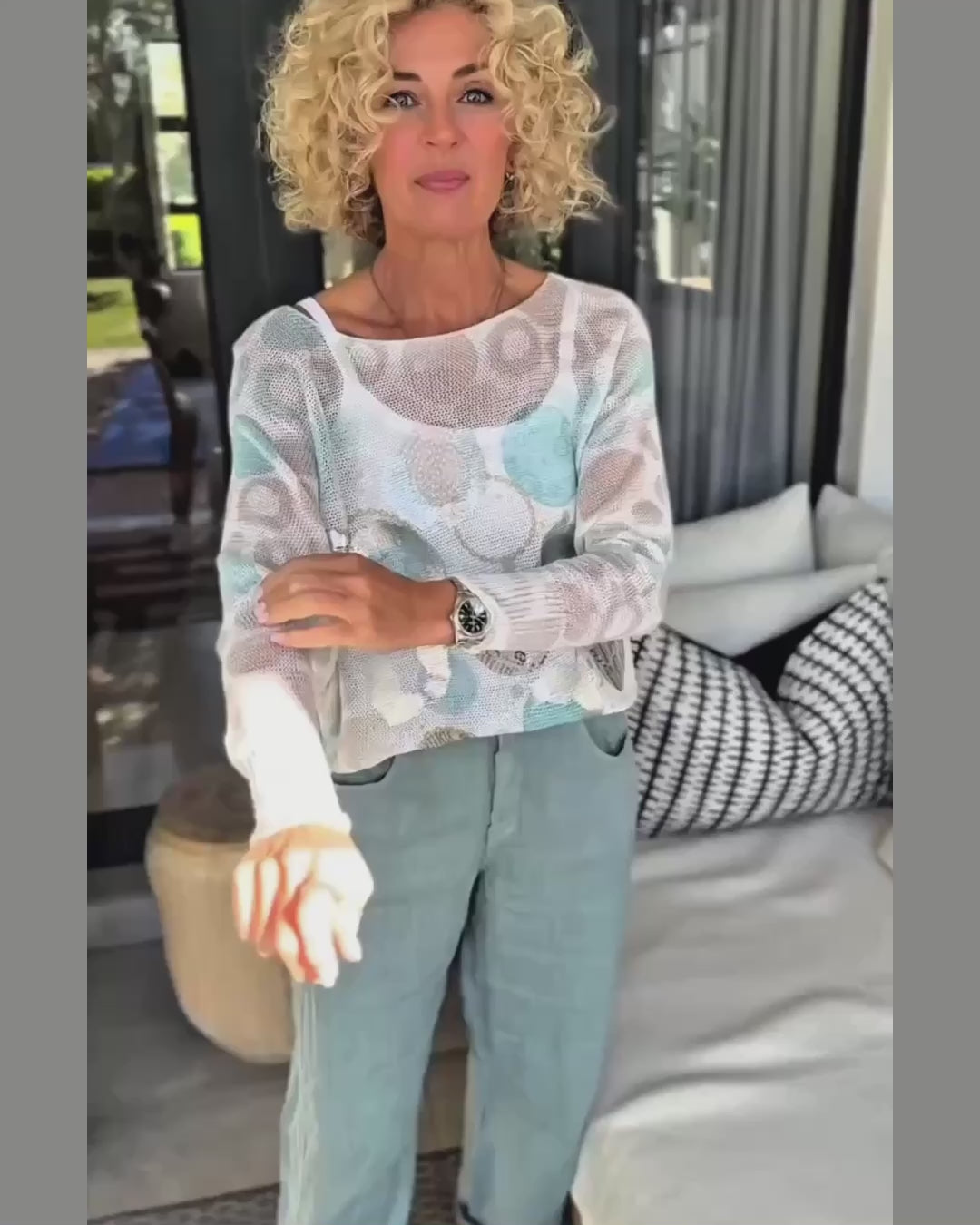 Soft and breathable knit fabric, this top ensures all-day comfort while keeping you effortlessly stylish. Intriguing decal print, meticulously designed to catch the eye and spark conversation. Each detail tells a story, making it a wearable work of art that adds personality to any ensemble. Perfect for transitioning between seasons, this light knit offers just the right amount of warmth without sacrificing style