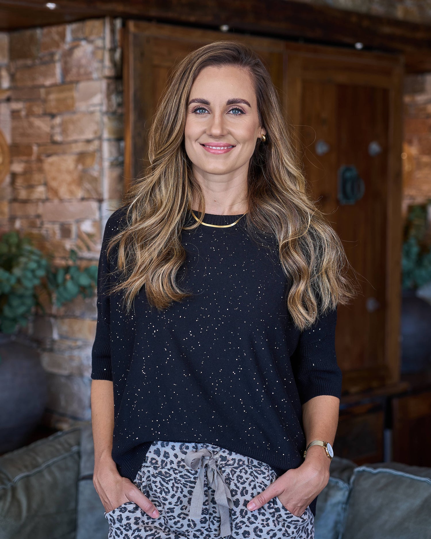 - Soft-feel knit with subtle, sparkly micro sequins
