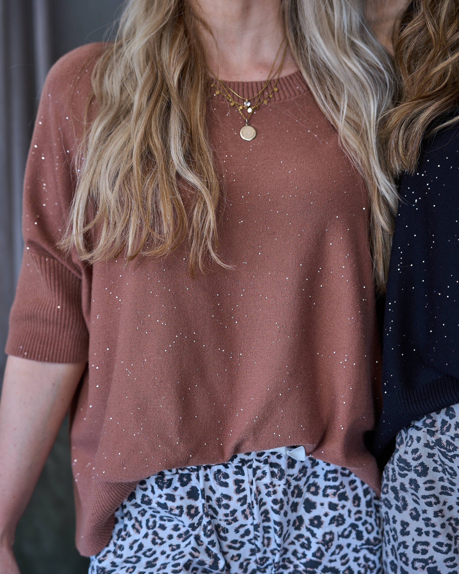 - Soft-feel knit with subtle, sparkly micro sequins