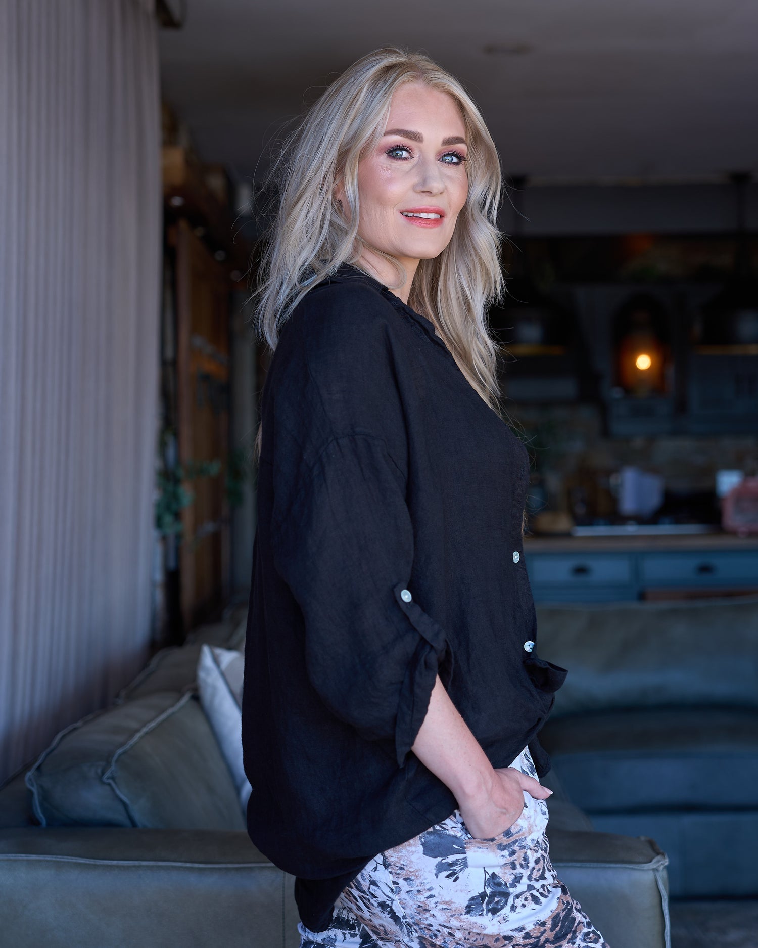 A true wardrobe staple, this button-down linen shirt is the definition of timeless summer style. Designed with a feminine soft collar and delicate shell buttons, it brings effortless polish to any look. The long-length cut offers extra coverage, with a rounded hem that flatters the shape and a slightly longer back for easy wear. Sleeves reach to the elbow and feature pull tabs, letting you roll them up or down to suit your mood. Light, breathable, and endlessly versatile - this is the shirt you’ll reach for again and again
