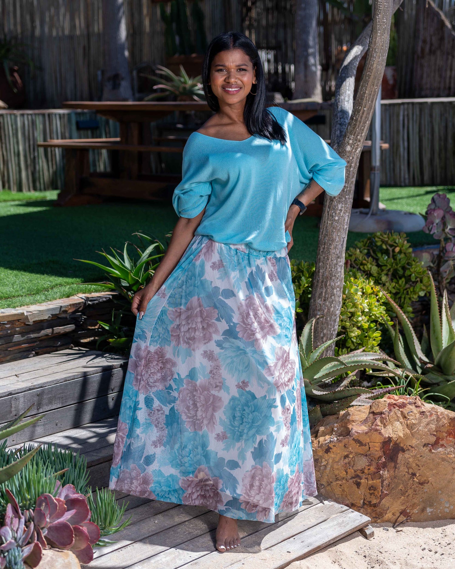 Light as a breeze and just as dreamy, this floral skirt is the definition of effortless summer style. The airy fabric feels almost weightless, flowing beautifully with every step while keeping you cool and comfortable. A fully lined design means you can move with confidence, and the elasticated, stretch waistband gives an easy, comfortable fit. The skirt flares gently toward the ankle, creating that perfect feminine swish. Pair it with a simple top, a colourful knit, or a fitted cami - this piece makes styling a joy