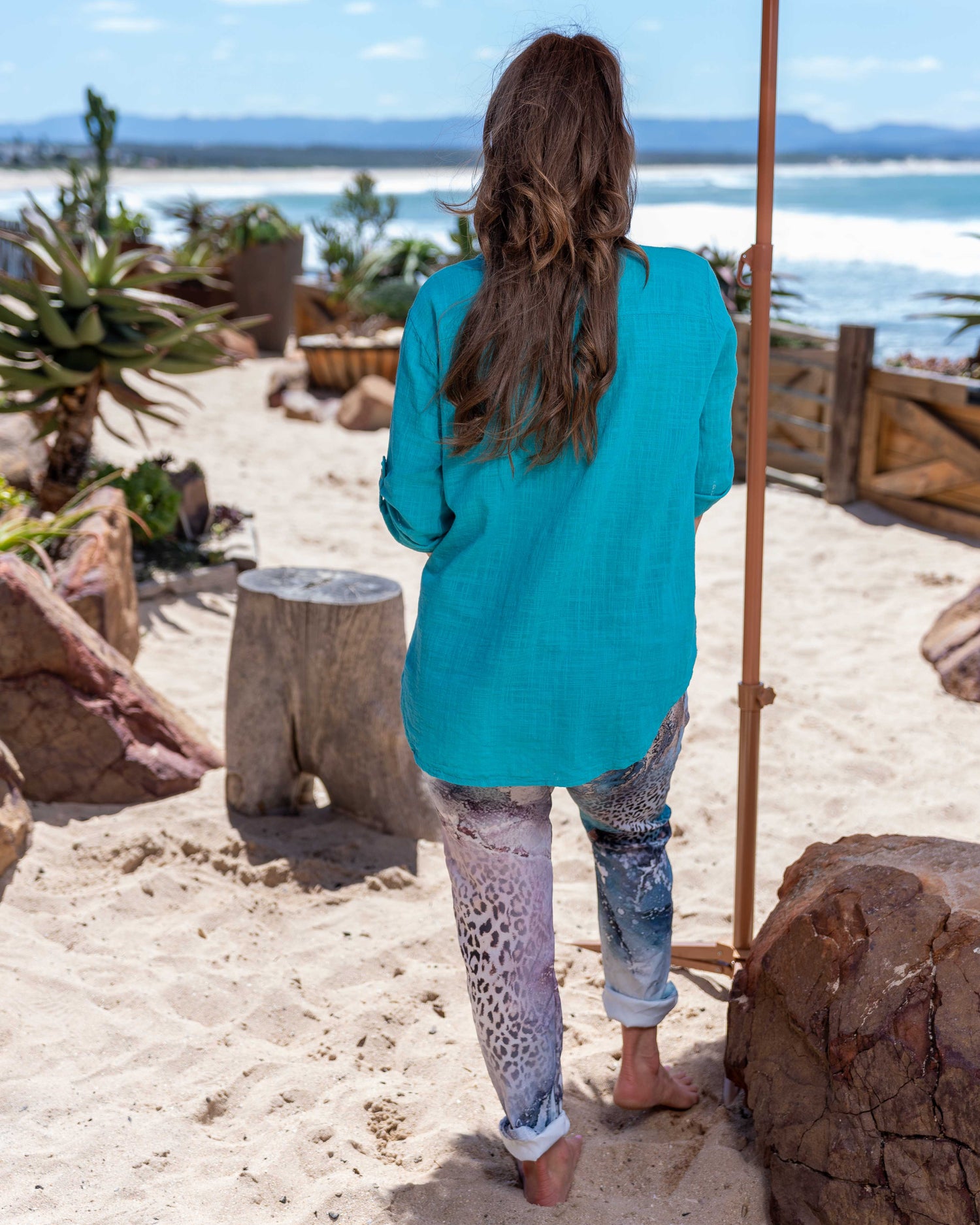 An effortless summer essential you’ll reach for again and again. This version of our popular top features a full button-down front in a beautiful solid block colour - timeless and versatile. The lightweight fabric keeps it breezy and comfortable, while the relaxed fit allows for endless styling options. Wear it buttoned up for a polished look, open over a cami for laid-back charm, or play around with a front twist for a modern touch